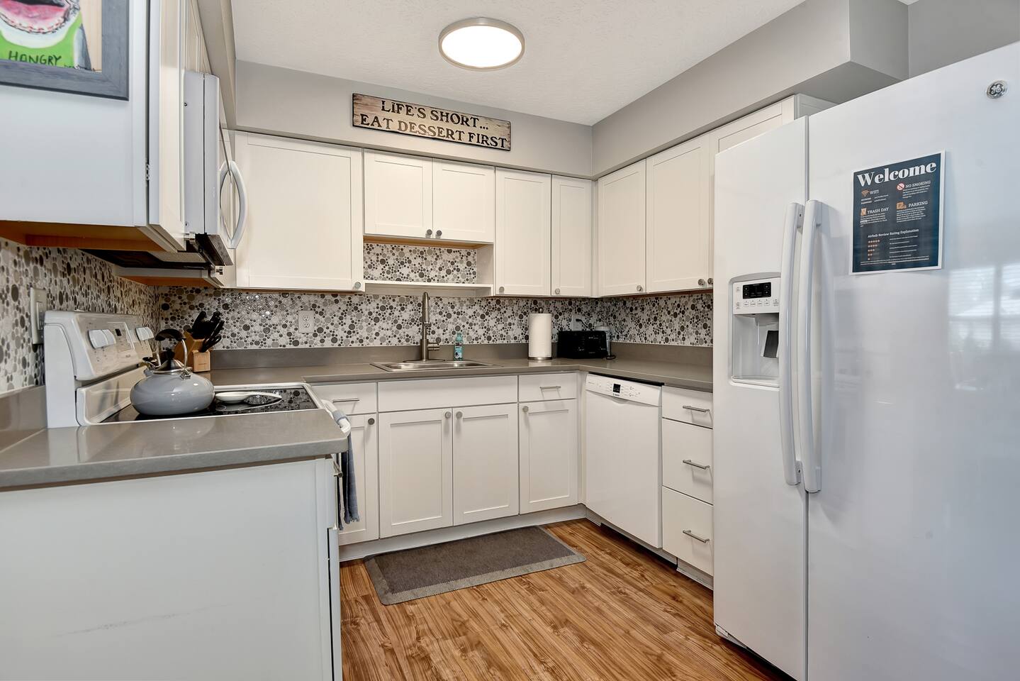 No parties. If a party is reported, we will keep your security deposit. This is a quiet neighborhood, and we must be respectful of our neighbors. Please don't throw fish guts or shrimp tails down the garbage disposal. They stink and it's really hard to clean. If you're staying over on a Sunday night, please help us out and take the trash/recycle out to the street. They usually come by EARLY on Mondays.