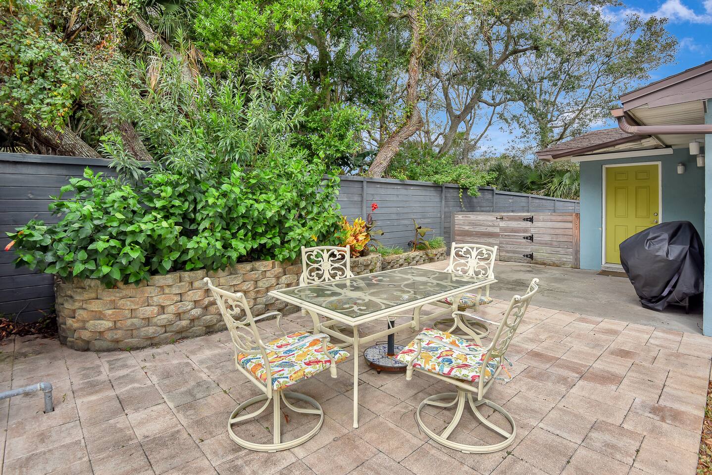 Minutes from the beach, floating dock, available boat lift, short walk to the dedicated beach walkover, on a canal with direct Intracoastal Waterway (ICW) access. Relax in the spacious, fenced yard with the firepit and plenty of seating. Cast a line off the dock, we've seen all kinds of fish, sea turtles and even the occasional manatee in the canal. Bring your boat or kayak! Close to restaurants and historical sights. The drive-on beach ramp (4x4 only) is less than a mile away. Pets - $125ea